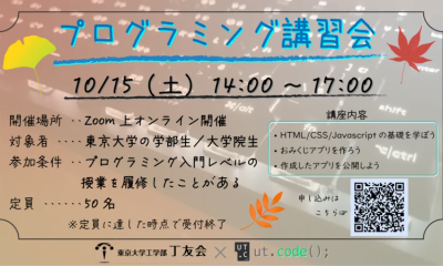 【丁友会 × ut.code();】プログラミング講習会のお知らせ